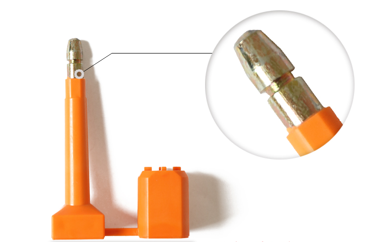 锁式锁紧,此锁为一次性,一旦封上无法开启,卡簧结构,锁杆锁紧锁套后锁死,起到很好的封箱作用。
